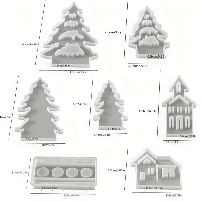 - 7-teiliges Silikonform-Set: Bäume, Häuschen & Halter